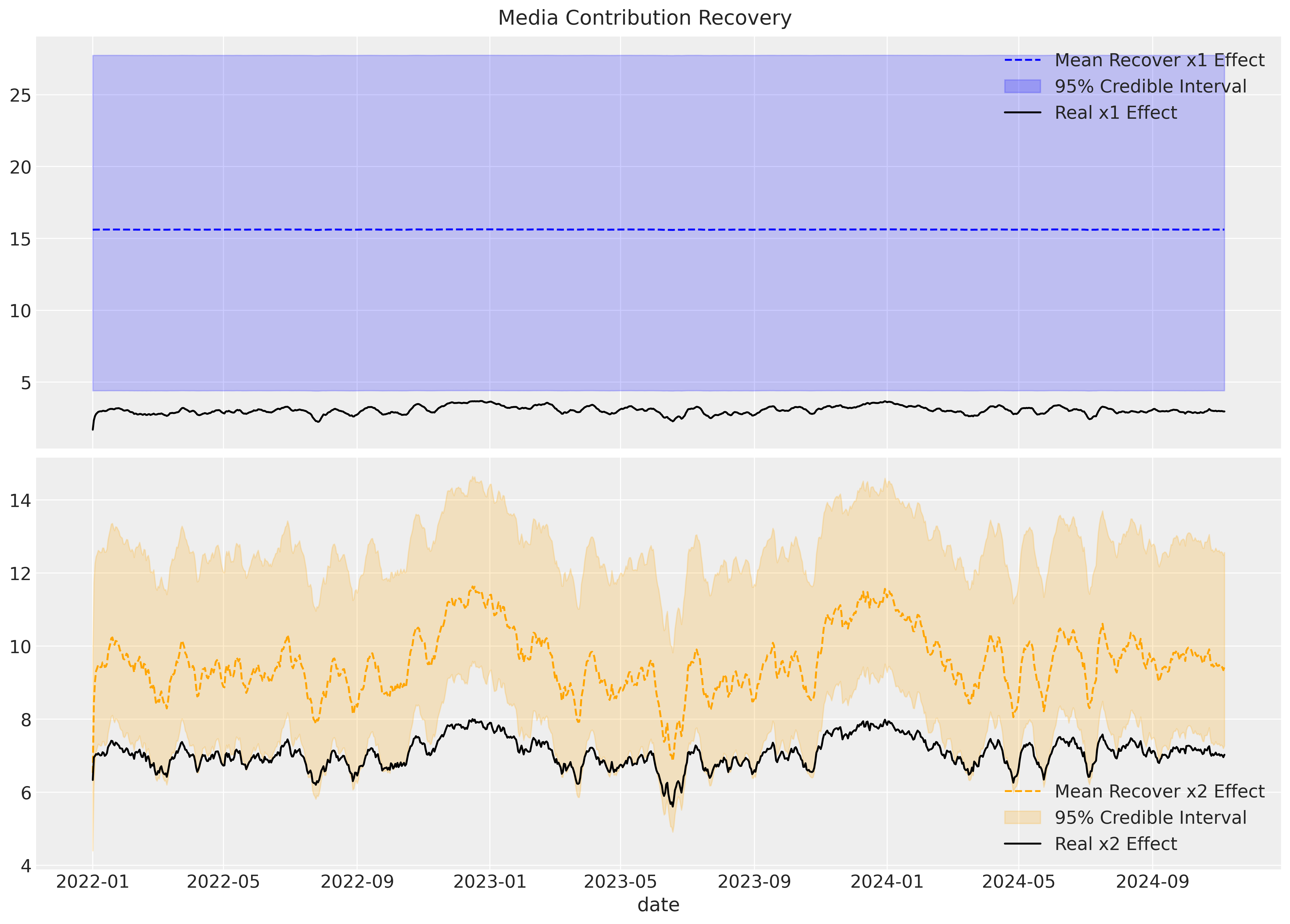 Great news! 🎉 Our model is nailing it when it comes to figuring out the actual impact of our treatment variables. We managed to take into account both the unseen confounders and the things we can see, like holidays.