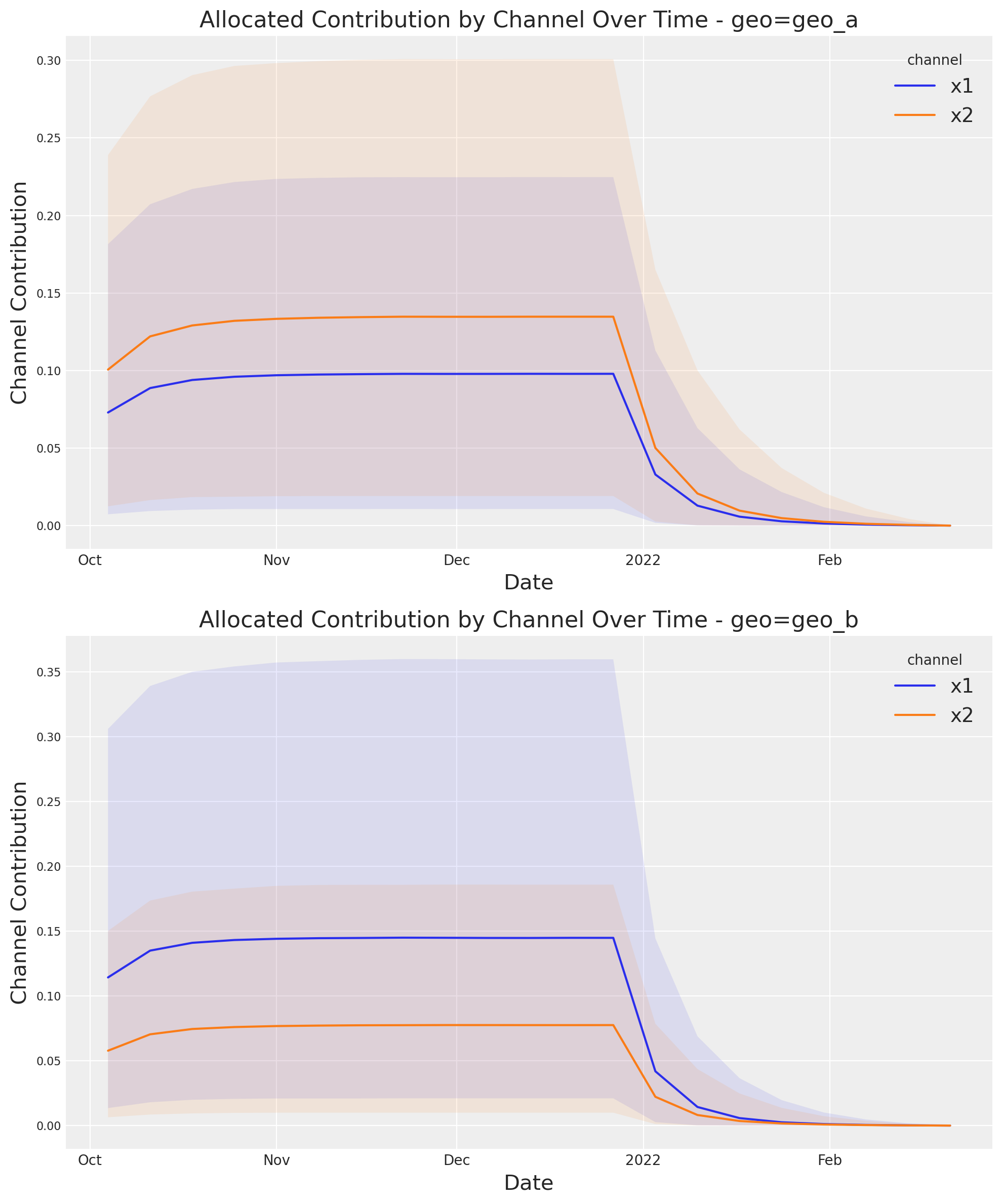 If you want to see the full uncertainty over time, you can use the plot suite and the method allocated_contribution_by_channel_over_time.